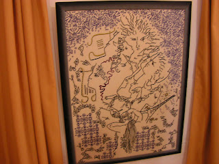 Empezamos viendo la expo de punto de cruz de la diseñadora Françoise Marchadier, ella estaba allí juntos con traductoras que le transmitían nuestras preguntas y curiosidades sobre su obra. Puedo decir que toda la obra la ha realizado durante 15 años y que ella no usa ni gráfico ni nada ella usa la aguja a modo de pincel y va creando sus diseños al mismo ritmo que va bordando. Muchas de esas fotos no tiene mucha resolución es una pena porque no se aprecia el valor de la obra.